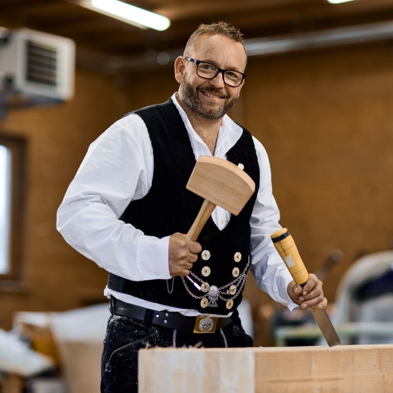 Als Schreinermeister bringt Michael Erfahrung, Genauigkeit und Kreativität ein. Mit seiner ruhigen Art findet er für jedes Projekt die passende Lösung.
